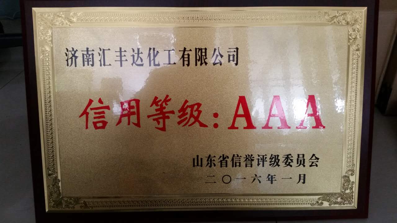 2016年1月7日,是公司成立10周年的喜慶日子。濟(jì)南匯豐達(dá)化工有限公司被山東省信譽評級委員會評為“信用等級AAA”企業(yè)。