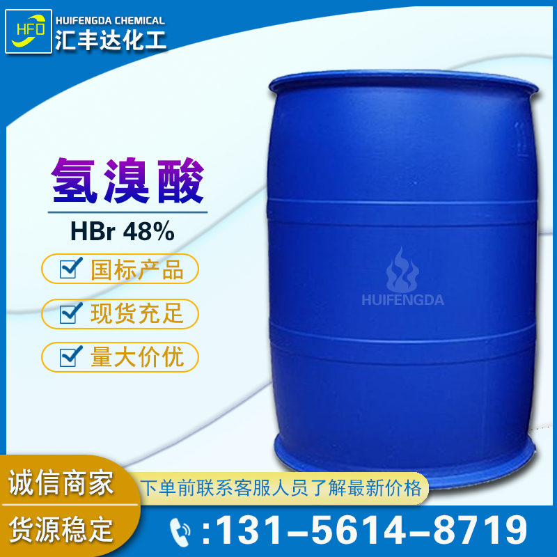 產(chǎn)品信息名 稱:氫溴酸含 量:48%產(chǎn) 地:山東外 觀:無色液體包 裝:300kg/桶保質(zhì)期:2年產(chǎn)品性質(zhì):氫溴酸英文名:Hydrobromic acid別 稱:溴氫酸;溴化氫化學(xué)式:HBr分子量:80.91CAS登錄號:10035-10-6EINECS登錄號:233-113-0熔 點(diǎn):-86